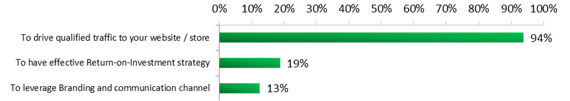 94% of the luxury brands agree that SEM leverages qualified traffic. However, only 19% of luxury brands agree that SEM provides an ROI strategy while only 13% of luxury brands agree that SEM can offer a branding strategy.